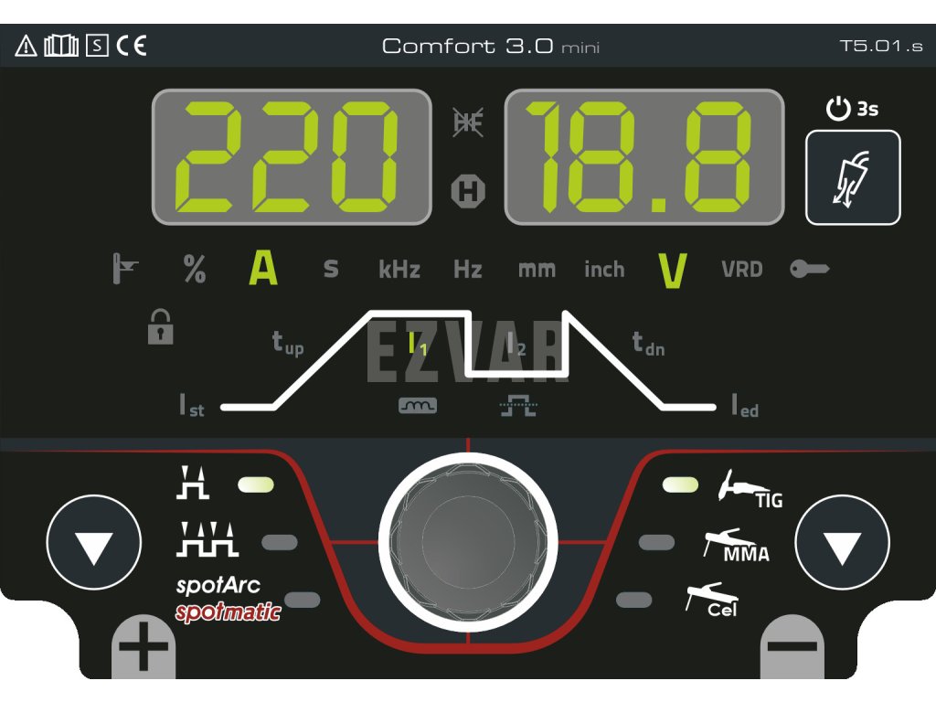- Normy: IEC 60974-1, -3, -10 CL.A