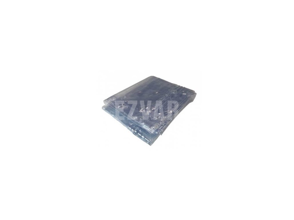- Zástena je lemovaná zo 4 strán. Na hornej strane je 7 vystužených plastových ôk a bočné strany sú opatrené zapínacími gombíkmi